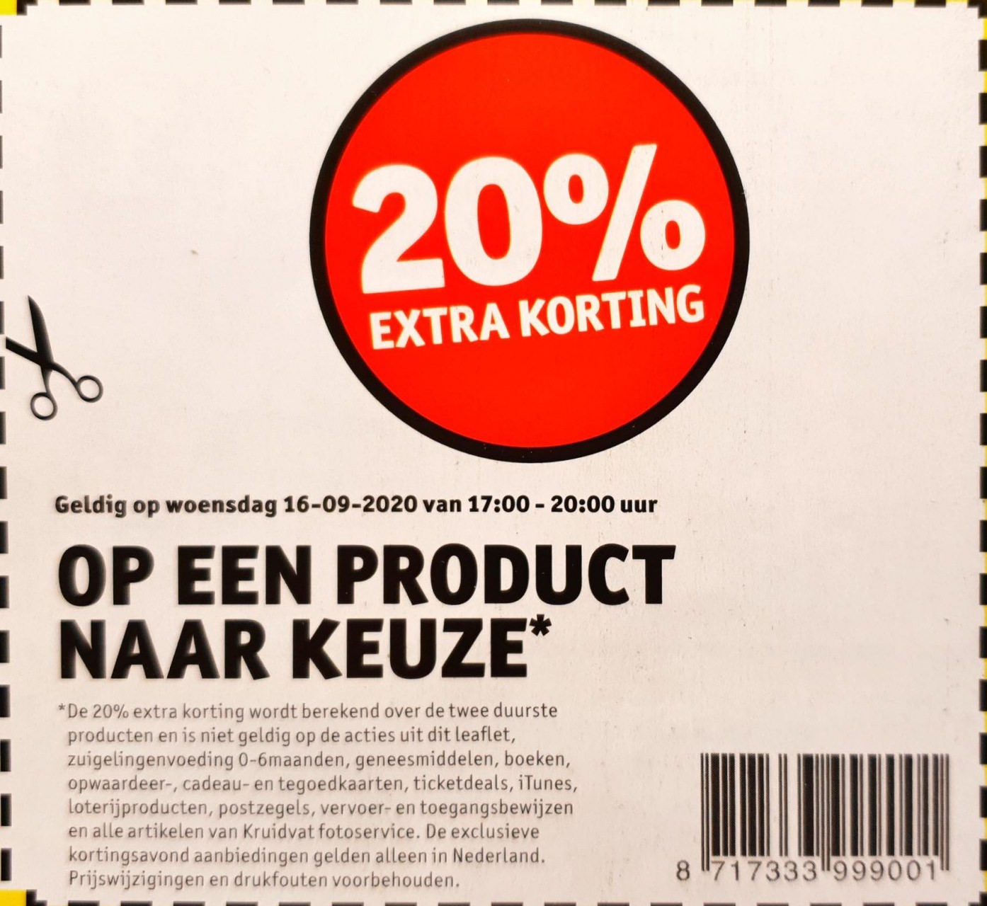 Bent u in het bezit van een Jouw Extra Voordeelkaart dan krijgt u zelfs een derde keer 20% korting en bij besteding vanaf € 20,00 een gratis Colgate tandpasta Sensation White t.w.v € 2,99.
