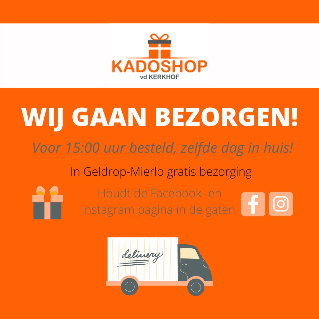 Wij gaan bezorgen in Geldrop en Mierlo; voor 15:00 besteld wordt dezelfde dag gratis bezorgd. Kijk op onze Facebook en Instagrampagina's voor meer informatie.