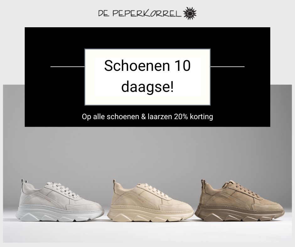 Je kunt nog maar een paar dagen profiteren van 20% korting op alle schoenen en laarzen tijdens de schoenen 10-daagse!