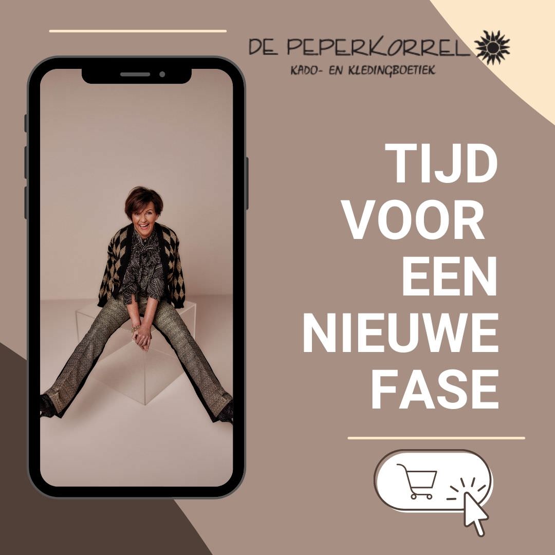 Er komt een einde aan de fysieke winkel, maar niet aan De Peperkorrel! Integendeel! We gaan online verder, sterker dan ooit! De Peperkorrel blijft dezelfde kwaliteit en mode bieden die je gewend bent met als doel dat je met nóg meer gemak en flexibiliteit kunt winkelen op www.depeperkorrel.com.Volg De Peperkorrel voor spannende nieuwe collecties en geniet van de exclusieve aanbiedingen die je gewend bent. Blijf lekker shoppen vanuit het comfort van je eigen huis. Ook al doet afscheid nemen van mijn fysieke winkel ook een beetje pijn, ik heb enorm veel zin in deze nieuwe fase!