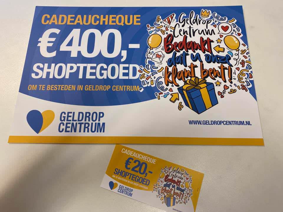 Zij ontvangen voor €400 aan cadeaubonnen in coupures van €20,-!Te besteden in Geldrop Centrum!
