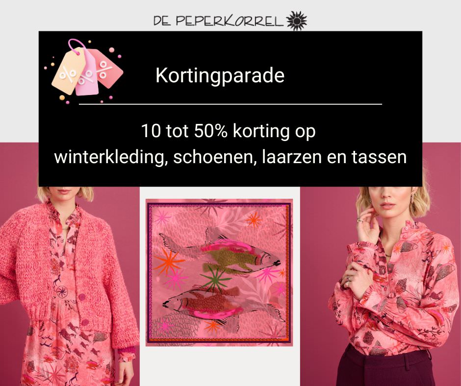 Loop eens binnen bij De Peperkorrel en profiteer van hoge kortingen tot wel 50% op winterkleding, schoenen, laarzen en tassen.