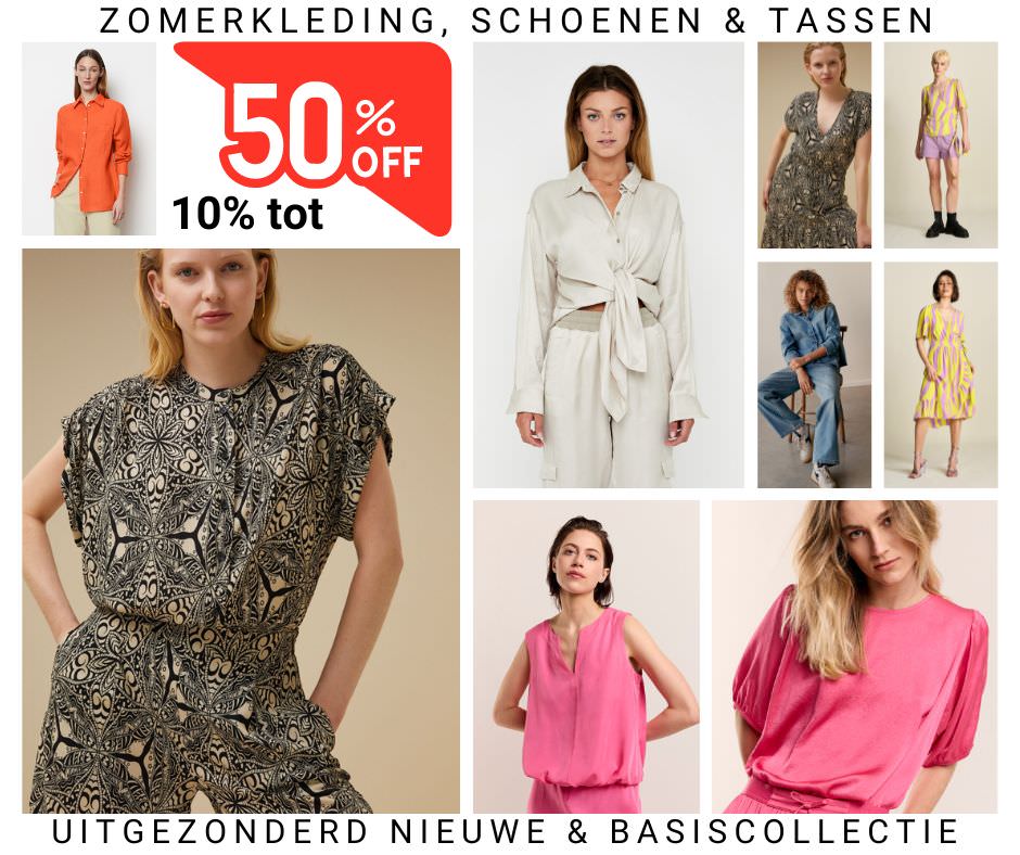 10 tot 50% korting op alle zomerkleding, schoenen en tassen.
