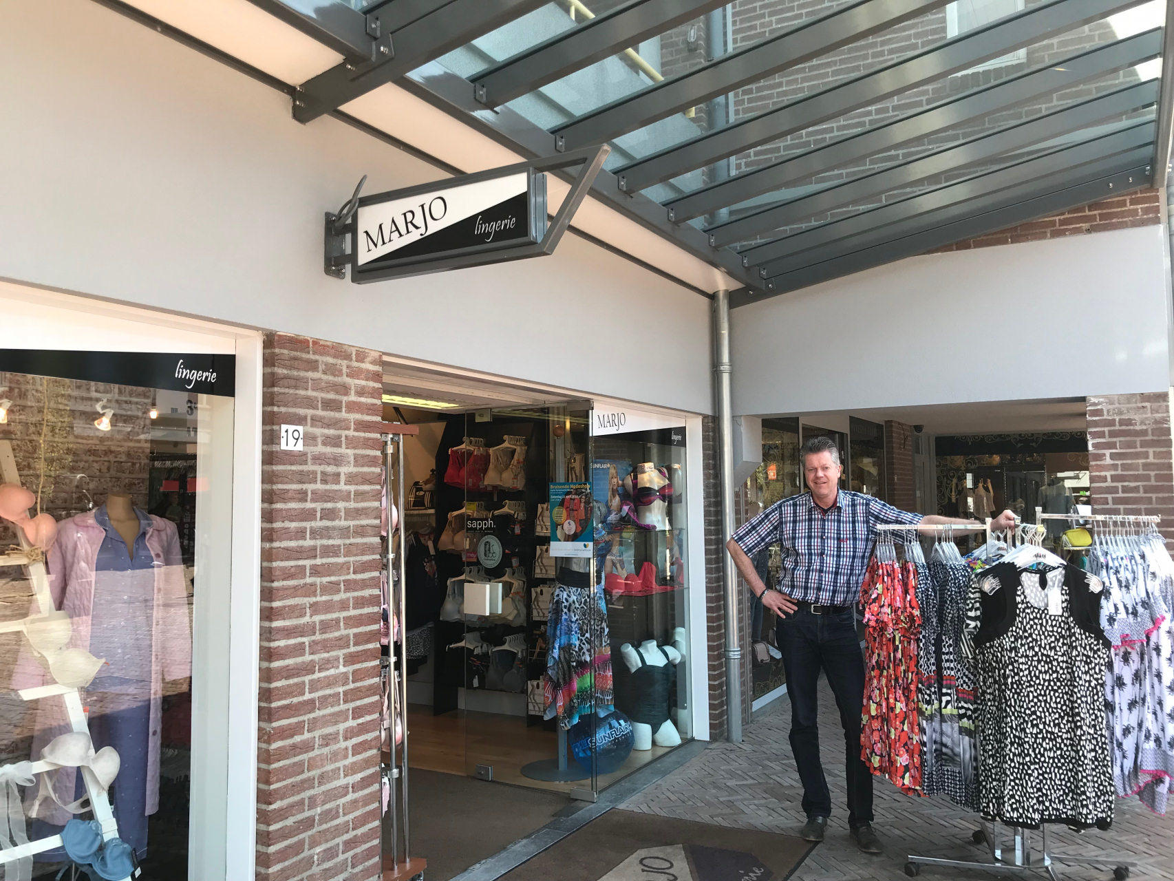 Vandaag heb ik afgesproken met Leon van Marjo Lingerie. Wie kent hem niet? Marjo Lingerie is dit jaar al 25 jaar gevestigd in Geldrop. Ik ben benieuwd naar zijn verhaal, en naar zijn collectie. Ik reed op een zonnige dag op mijn fiets naar het centrum van Geldrop. Het is gezellig in het centrum met het terras van Bakker Bart midden op het plein van de Kerkstraat. Ik zeg plein omdat het voor mijn gevoel nu meer op een plein lijkt dan op een straat. De zon schijnt heerlijk en het er gezellig druk. Ik zie Leon al buiten in gesprek staan. Ik wacht mijn beurt af en snuffel even tussen de bh’s en badkleding. Leuk! Na een vriendelijke ontmoeting word ik uitgenodigd om mee naar beneden te gaan.