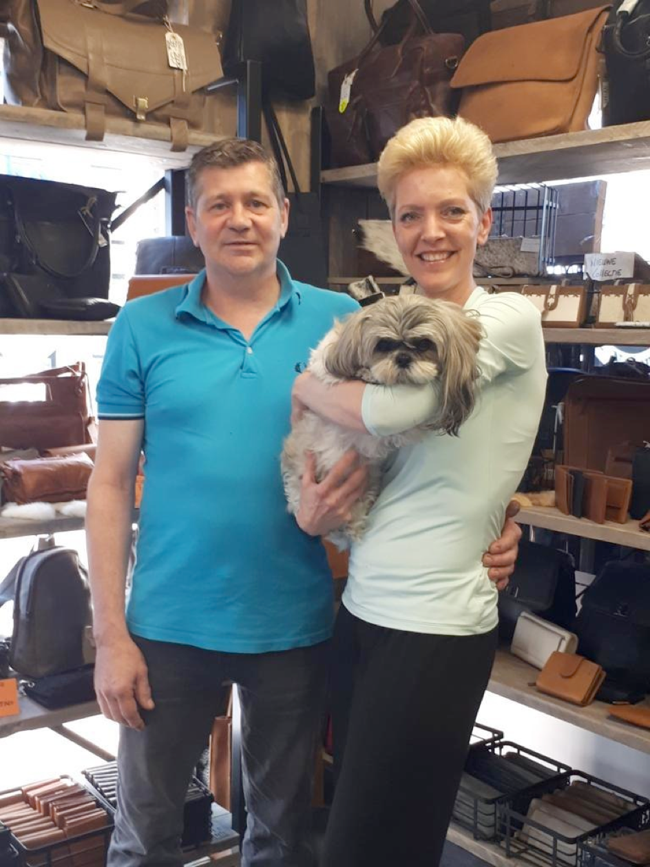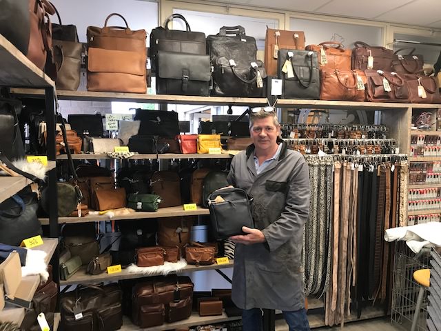 “Ongeveer 6 jaar geleden ben ik samen met Franske gaan werken. Het is niet alleen heel noodzakelijk maar ik vind het ook echt heel leuk.”Van Monique krijg ik een lekker bakkie koffie en tussen de bedrijven door beantwoorden Frans en Monique al mijn vragen. Ik kijk om mij heen terwijl zij hun klanten helpen en ondertussen aan het zwaaien zijn naar mensen die voorbijlopen. Mijn oog valt op een rek achter mij. Ik zie daarop de meest prachtige tassen staan. Ze staan om de hoek als je binnenkomt en omdat je in een ‘werkplaats’ instapt heb je eigenlijk niet in de gaten hoe mooi die tassen zijn.