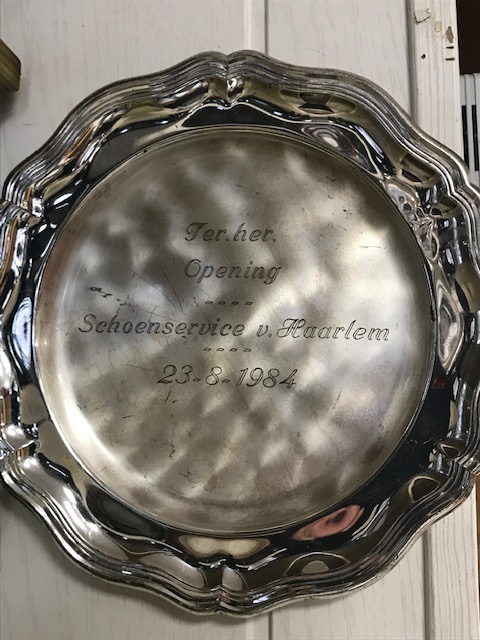 Frans vertelt dat hij als kleine jongen, hij zat nog op de basisschool, al klusjes deed voor een schoenmaker uit zijn buurt. Toen hij klaar was met zijn studie wilde hij een baan gaan zoeken. Maar de schoenmaker kon hem niet meer missen en heeft hem een baan aangeboden. Dat was in Helmond. Later is hij in Geldrop komen werken. "En nog later in 1984 heb ik de toko overgenomen. Toen als Schoenservice v. Haarlem”Aan de muur hangt hier nog een aandenken van.