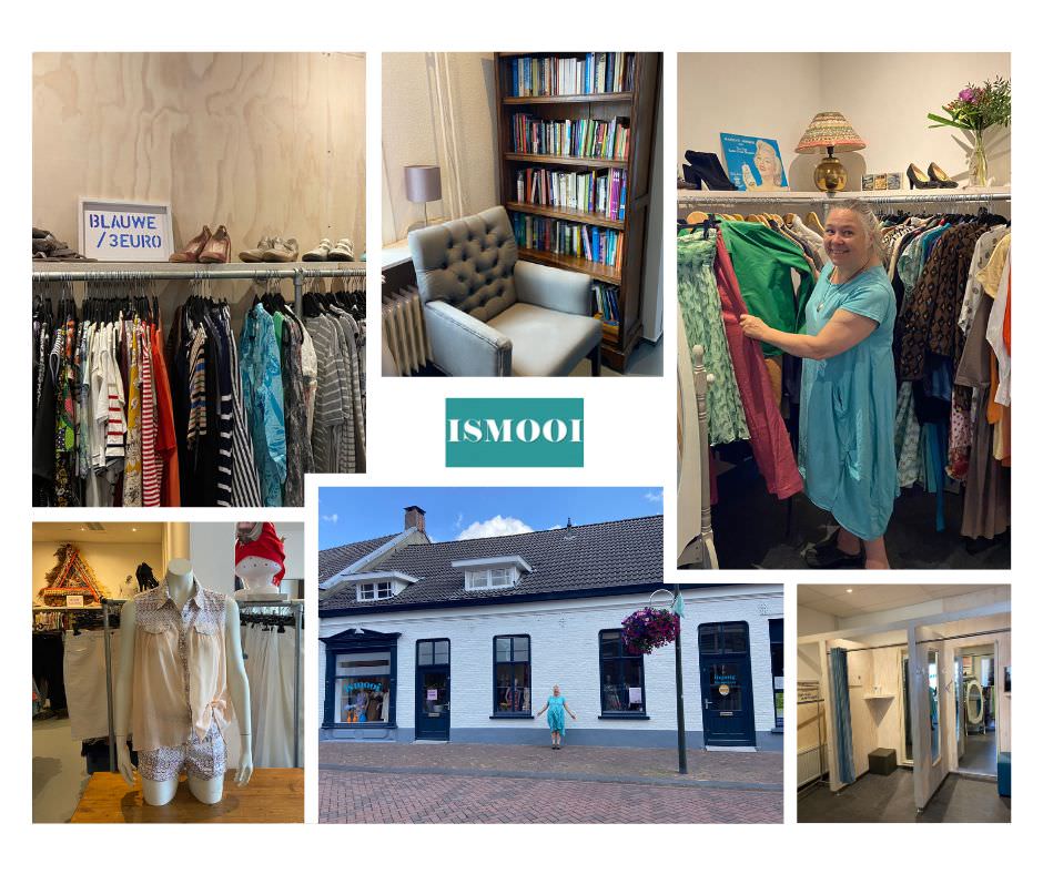 Inge zit aan de keukentafel. Ze vertelt dat ze zich heel fijn voelt op deze plek, en dat straalt ze ook uit. Op mijn vraag antwoord ze heel enthousiast: “Voor iedereen!”“Van 14 tot 94 jaar en ouder bij wijze van spreken. Ik ben er trots op dat we een ontmoetingsplek zijn. In de winkel staan nu ook allemaal stoeltjes zodat je ook echt even op je gemak kunt zitten. Nu de entree geen opstap meer heeft zijn we ook letterlijk laagdrempelig. Dat merken we nu al. We hebben overigens niet alleen dameskleding maar ook herenkleding.”