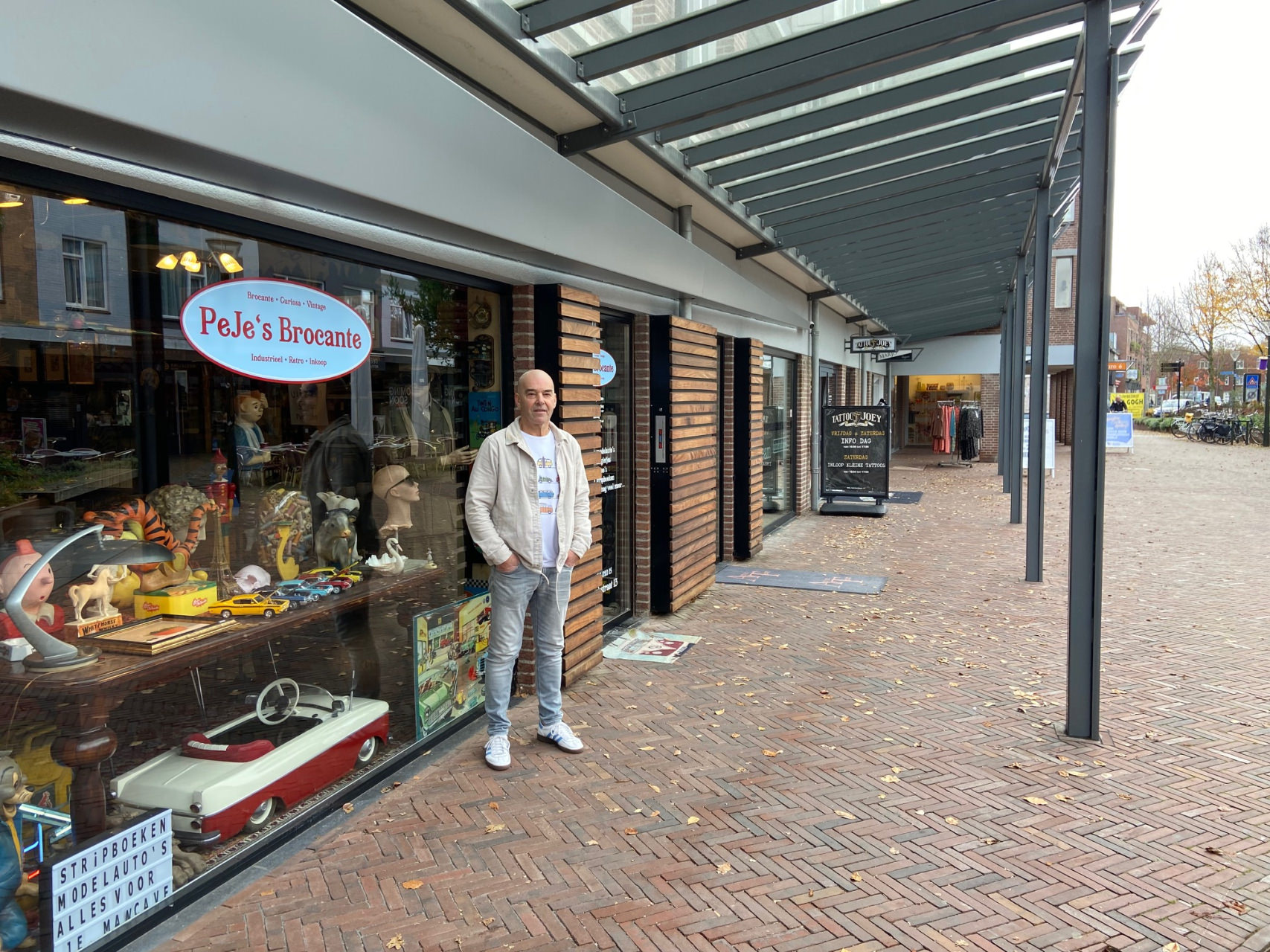 “Laatst kwam er een klant op zoek naar een punnikpaddenstoel, ze vertelde me dat ze die nergens meer kon kopen, maar ik liep naar een laadje en viste hem er zo tussenuit. Je kunt het zo gek niet bedenken of ik heb het wel. Probeer mij maar uit. :) Omdat ik verschillende autootjes, stripboeken of singles/lp’s heb, is ook de verzamelaar een geliefde klant. Of als je thuis een mancave wilt inrichten, dan heb ik daar van alles voor. En nu met Kerst heb ik ook ouderwetse Kerstversiering van goede kwaliteit. Kortom, als je houdt van bijzonder en oud. Dan moet je gewoon regelmatig even binnen lopen. “