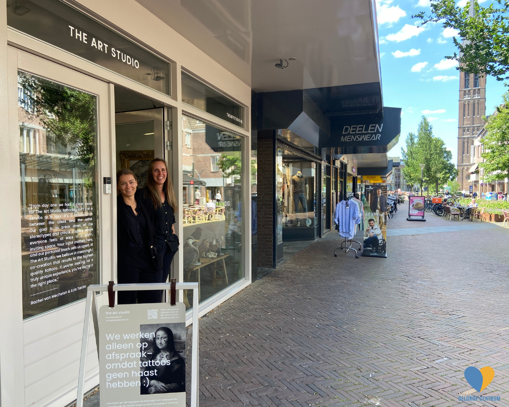 “Heel fijn. We kunnen nu meer laten zien waar we voor staan, daarom hebben we ook gekozen voor een open inkijk. Ook voor onze klanten is het fijn, zij kunnen even naar buiten, een boodschap of broodje halen. Onze klanten zitten een hele dag of meerdere dagen voordat het kunstwerk staat, dat is best pittig. Niet alleen voor ons maar ook voor de klanten. Nu lopen ze vaak wel even naar buiten dat deden ze op onze vorige locatie nooit.Het contact met andere ondernemers is ook prettig. We wilde altijd al in het centrum zitten, maar dan wilde we wel iets kopen. Er komt niet veel te koop, dus toen we dit pand zagen hebben we alles uit de kast getrokken om het te realiseren. Dat was niet makkelijk, maar het is gelukt.“