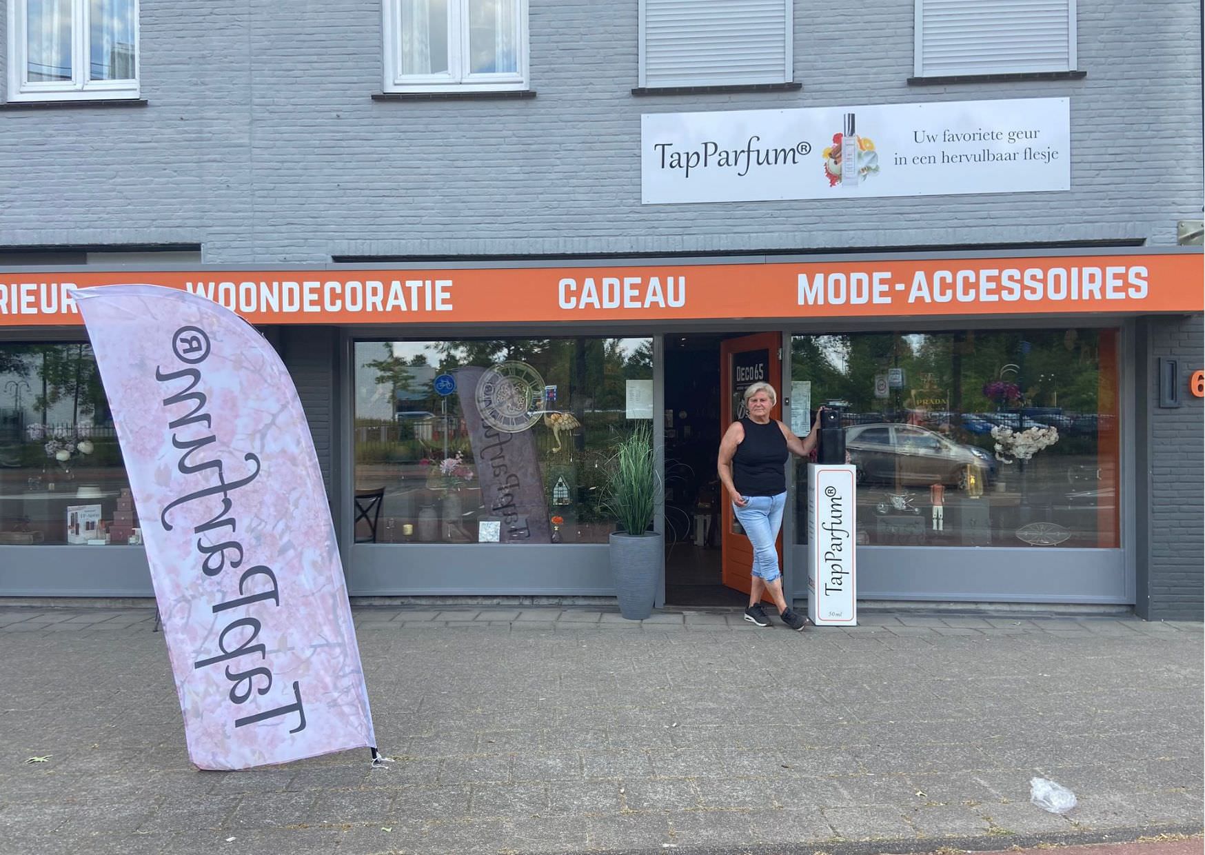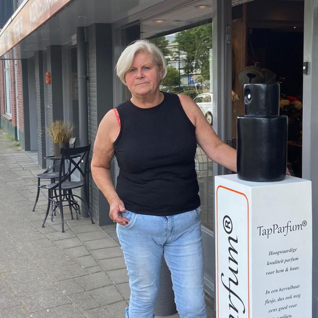“Nee dat is parfum. Parfum is duur en dit is een goedkope manier om toch te genieten van de bekende geuren. Veel jeugd komt hier inkopen doen. Buiten staat ook een zuil met reclame van dit merk. Die zuil heeft mijn zoon ontworpen. Hij is heel creatief.”Hoeveel kinderen hebben jullie?