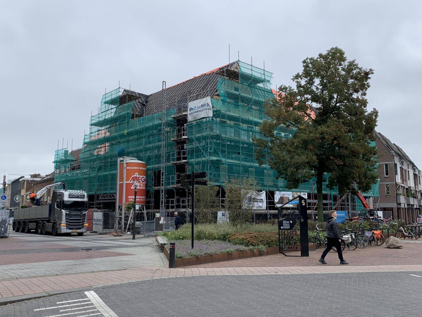 Inmiddels is de transformatie van de voormalige Rabobank in het centrum van Geldrop in volle gang.De contouren van het gebouw worden steeds duidelijker. De gevels zijn al grotendeels gemetseld en de woning scheidende wanden binnen in het gebouw zijn geplaatst.